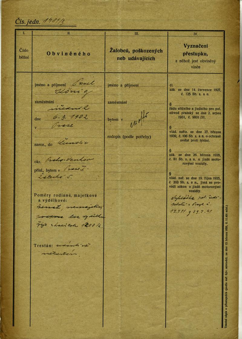 Nationalarchiv Prag > Polizei-Direktion Prag > 1941-1950 > K > König Pavel