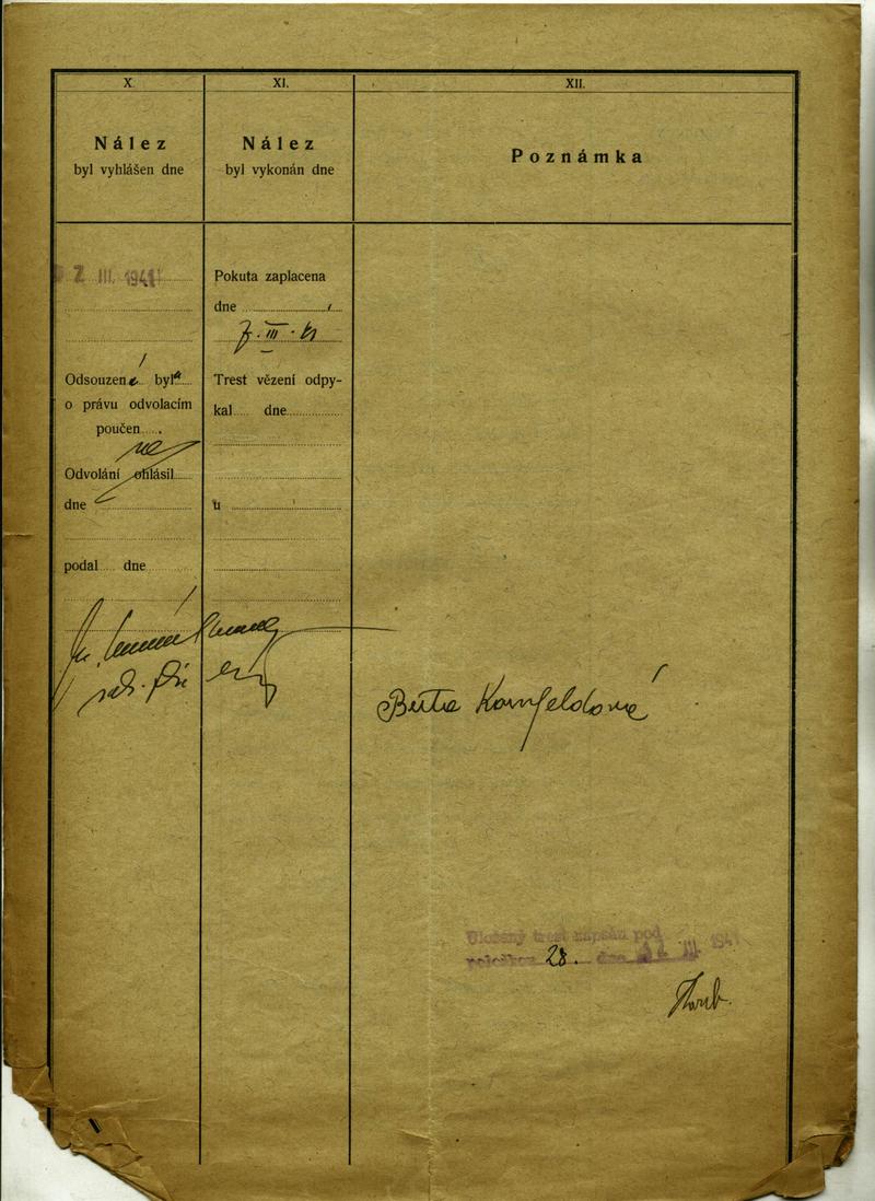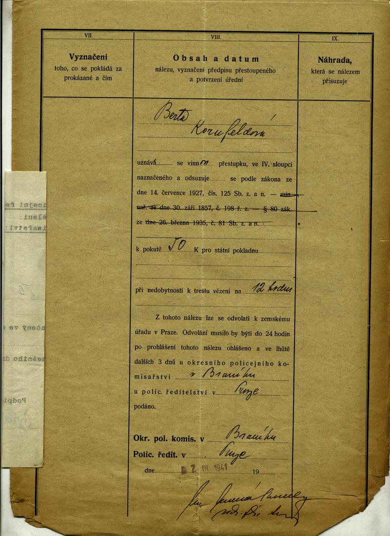 Nationalarchiv Prag > Polizei-Direktion Prag > 1941-1950 > K > Kornfeldová Berta