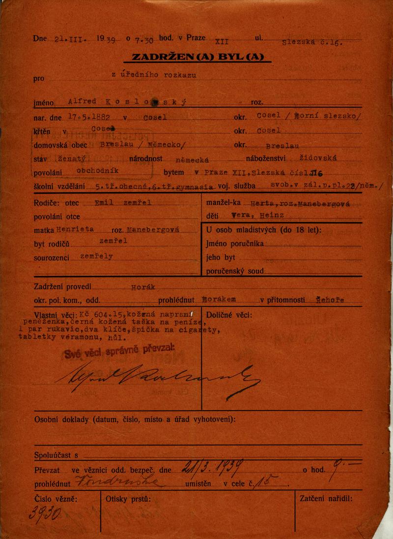 Nationalarchiv Prag > Polizei-Direktion Prag > 1941-1950 > K > Koslowský Alfred