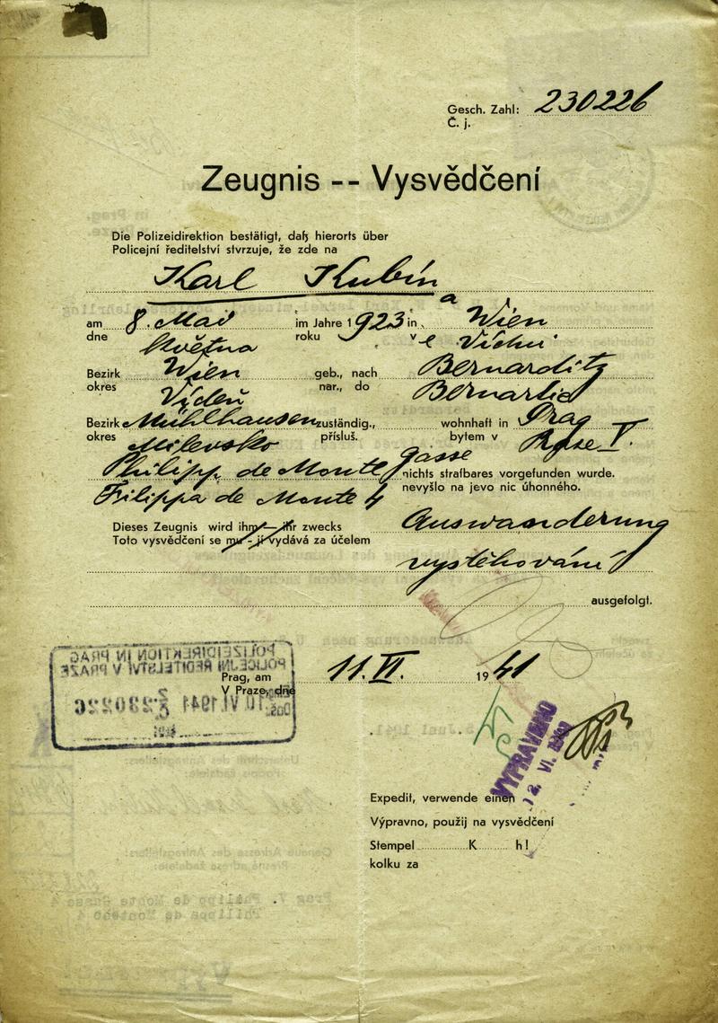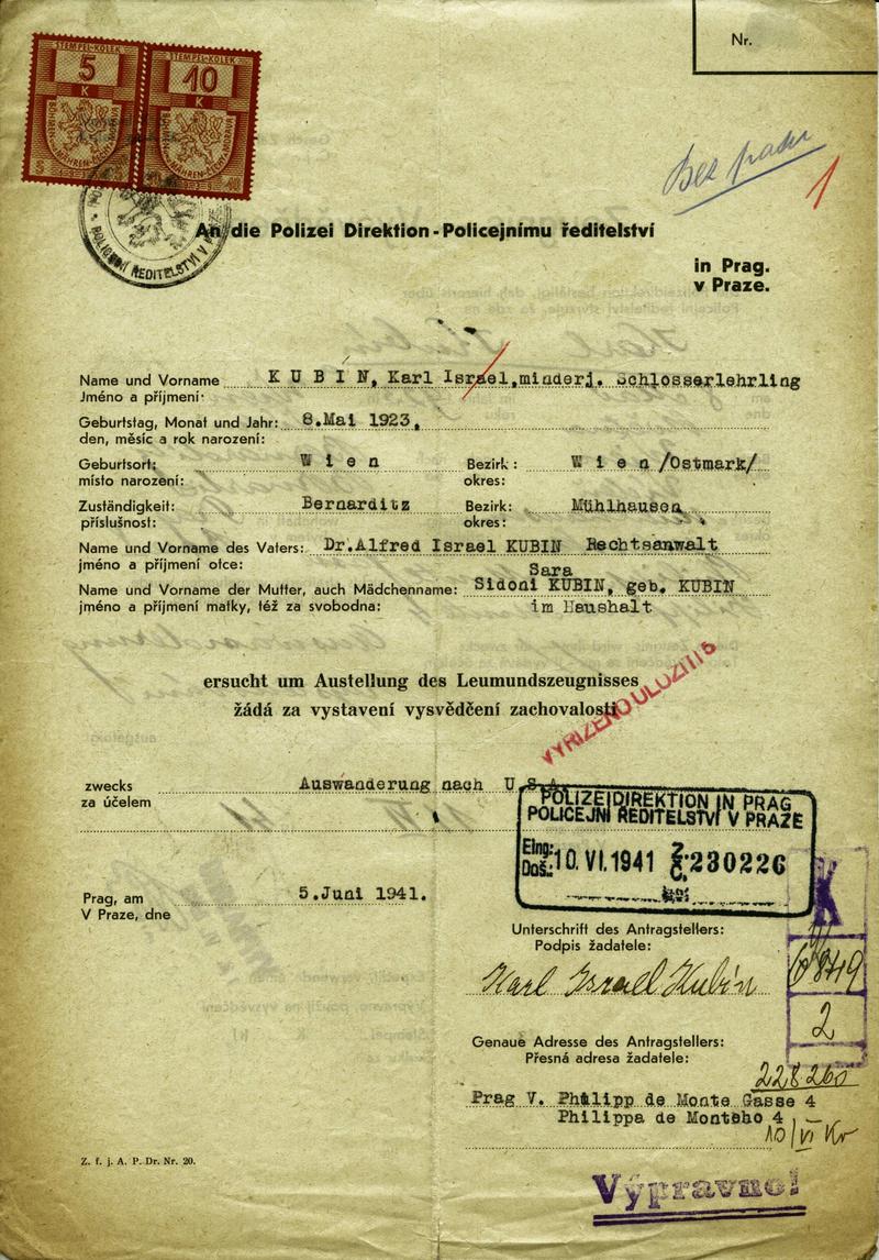 Nationalarchiv Prag > Polizei-Direktion Prag > 1941-1950 > K > Kubin Karel