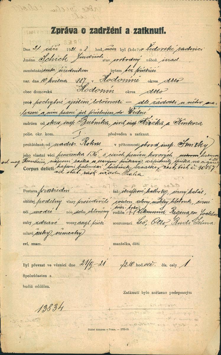 Nationalarchiv Prag > Polizei-Direktion Prag > 1931-1940 > S > Schick Jindřich
