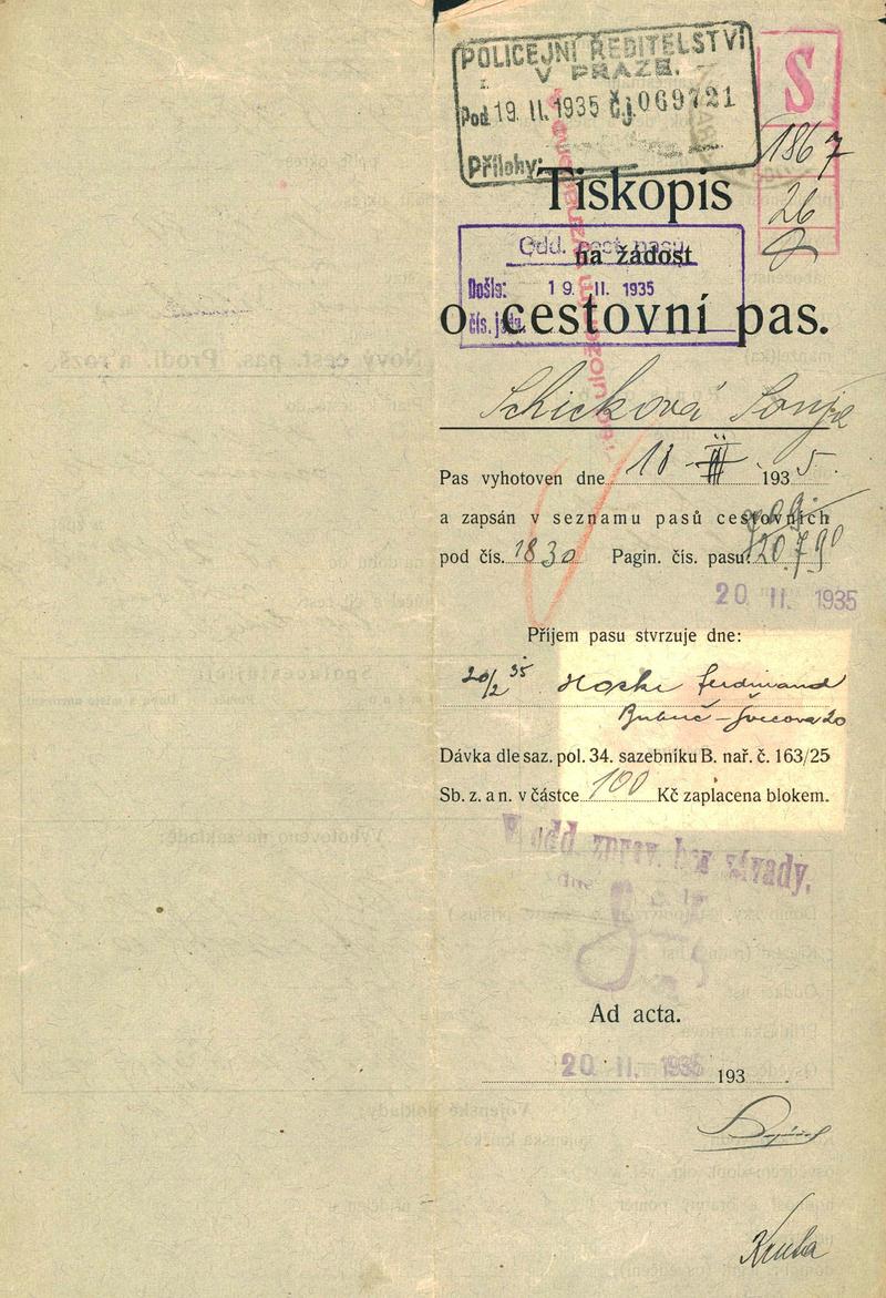 Nationalarchiv Prag > Polizei-Direktion Prag > 1931-1940 > S > Schicková Sonja