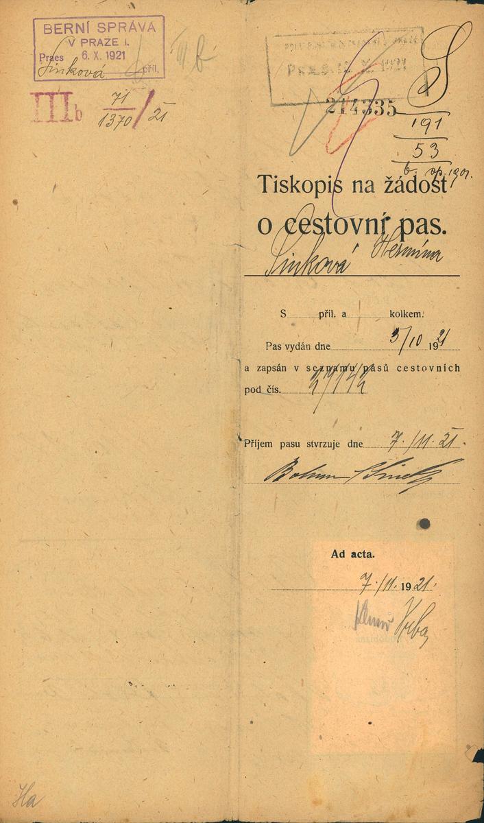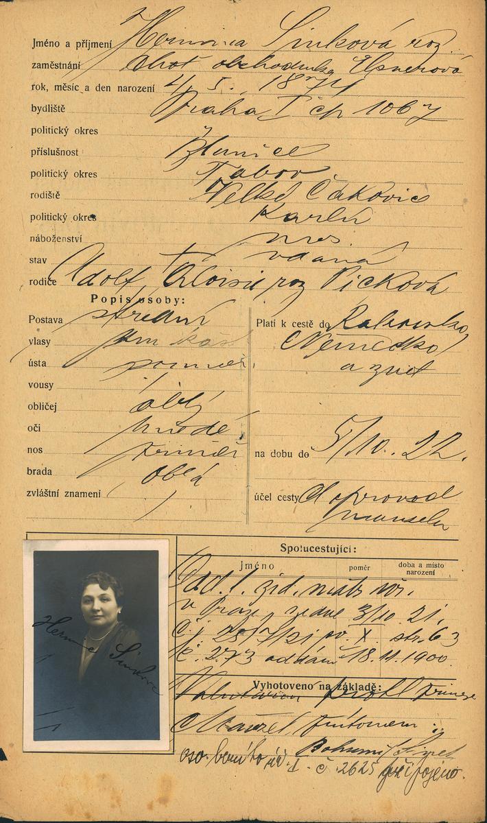 Nationalarchiv Prag > Polizei-Direktion Prag > 1931-1940 > S > Sinková Hermína
