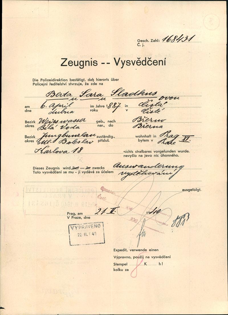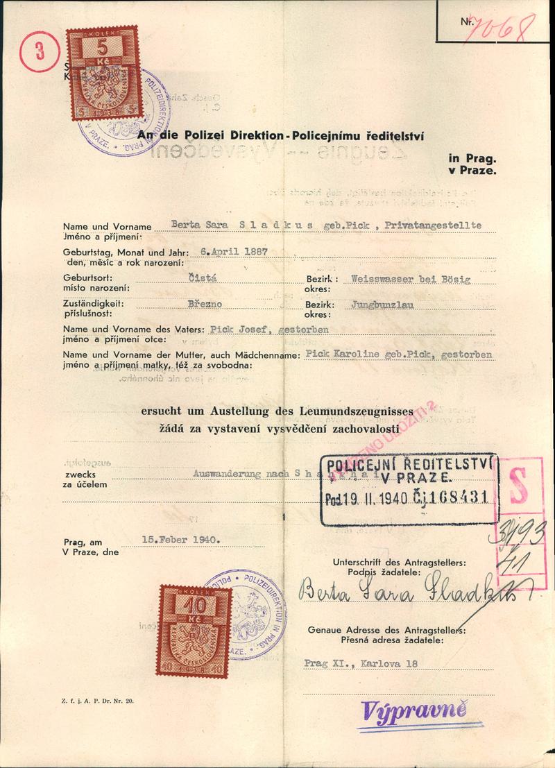 Nationalarchiv Prag > Polizei-Direktion Prag > 1931-1940 > S > Sladkusová Berta