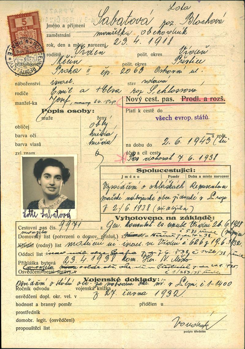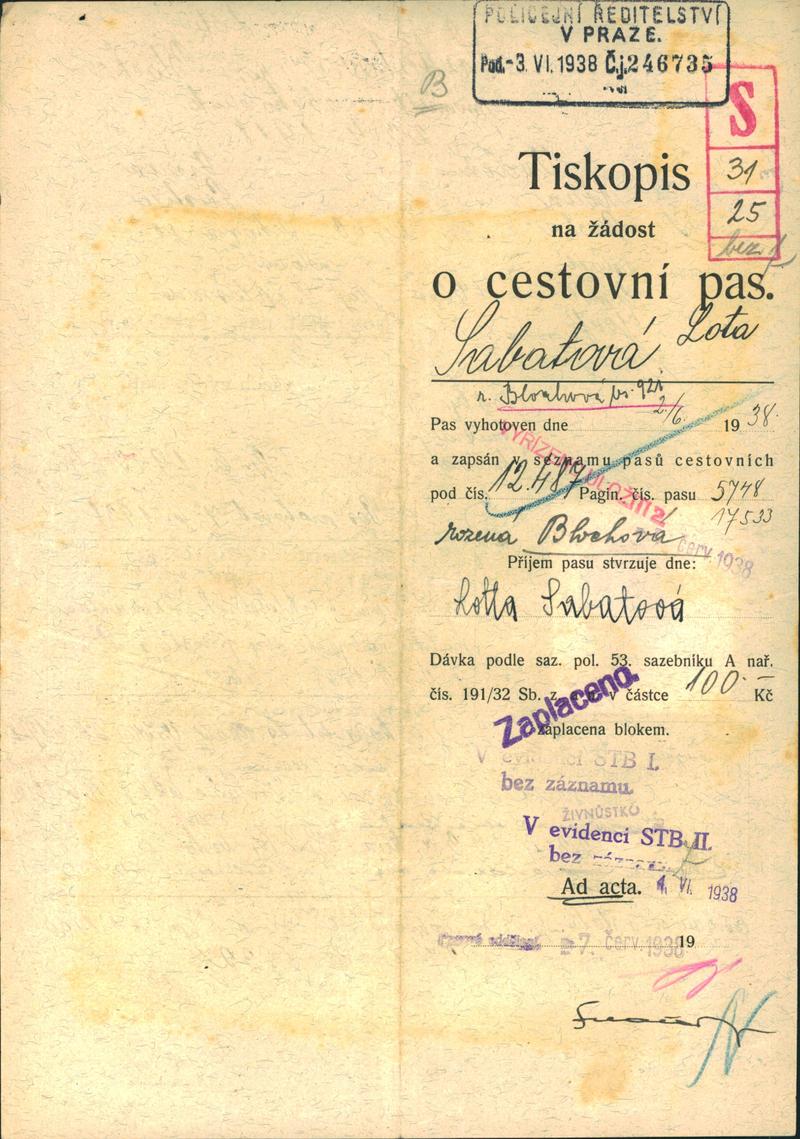 Nationalarchiv Prag > Polizei-Direktion Prag > 1931-1940 > S > Sabatová Lota