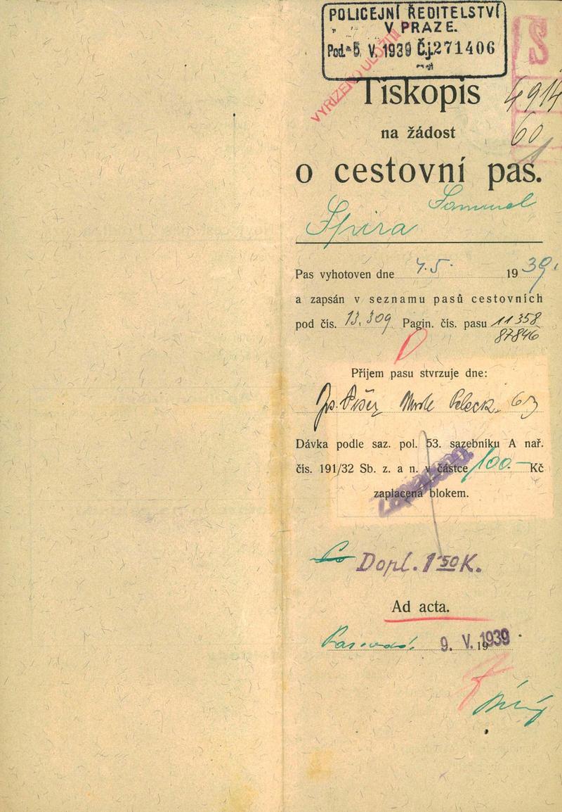 Nationalarchiv Prag > Polizei-Direktion Prag > 1931-1940 > S > Spira Samuel