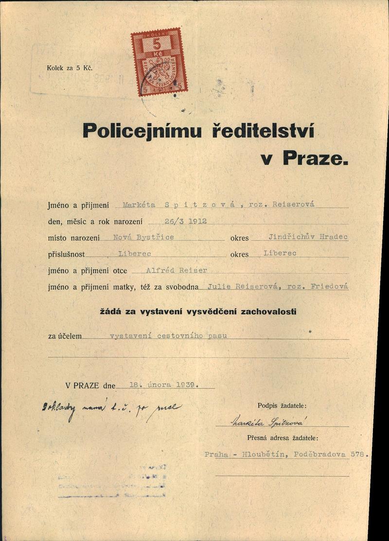 Nationalarchiv Prag > Polizei-Direktion Prag > 1931-1940 > S > Spitzová Markéta