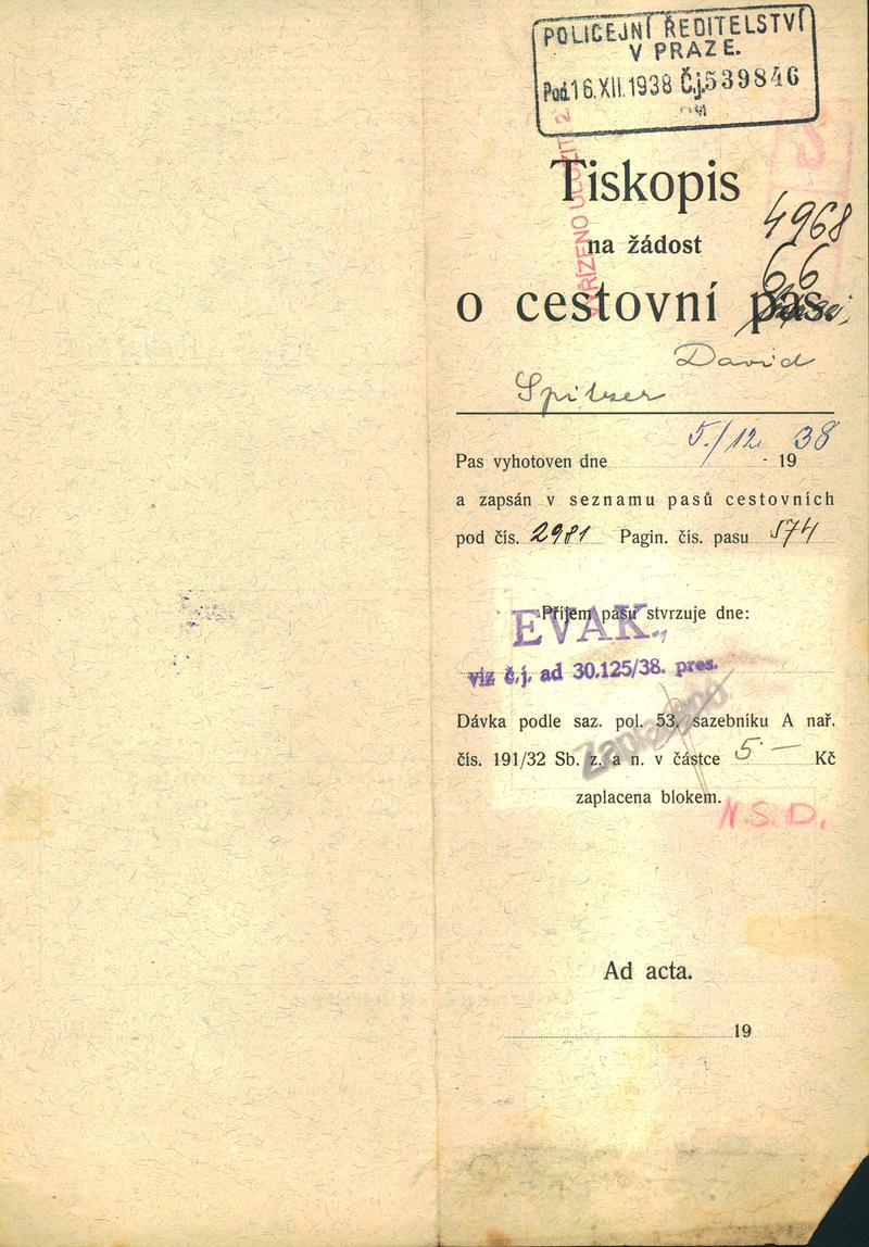 Nationalarchiv Prag > Polizei-Direktion Prag > 1931-1940 > S > Spitzer David