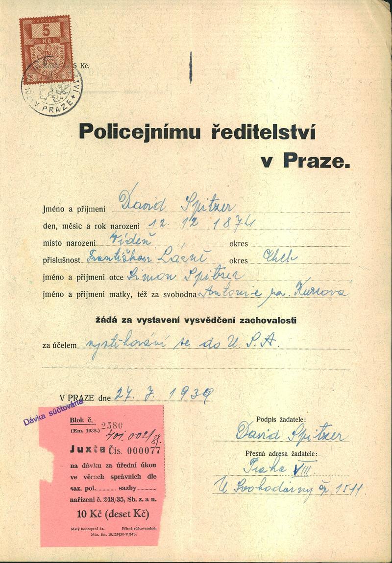 Nationalarchiv Prag > Polizei-Direktion Prag > 1931-1940 > S > Spitzer David