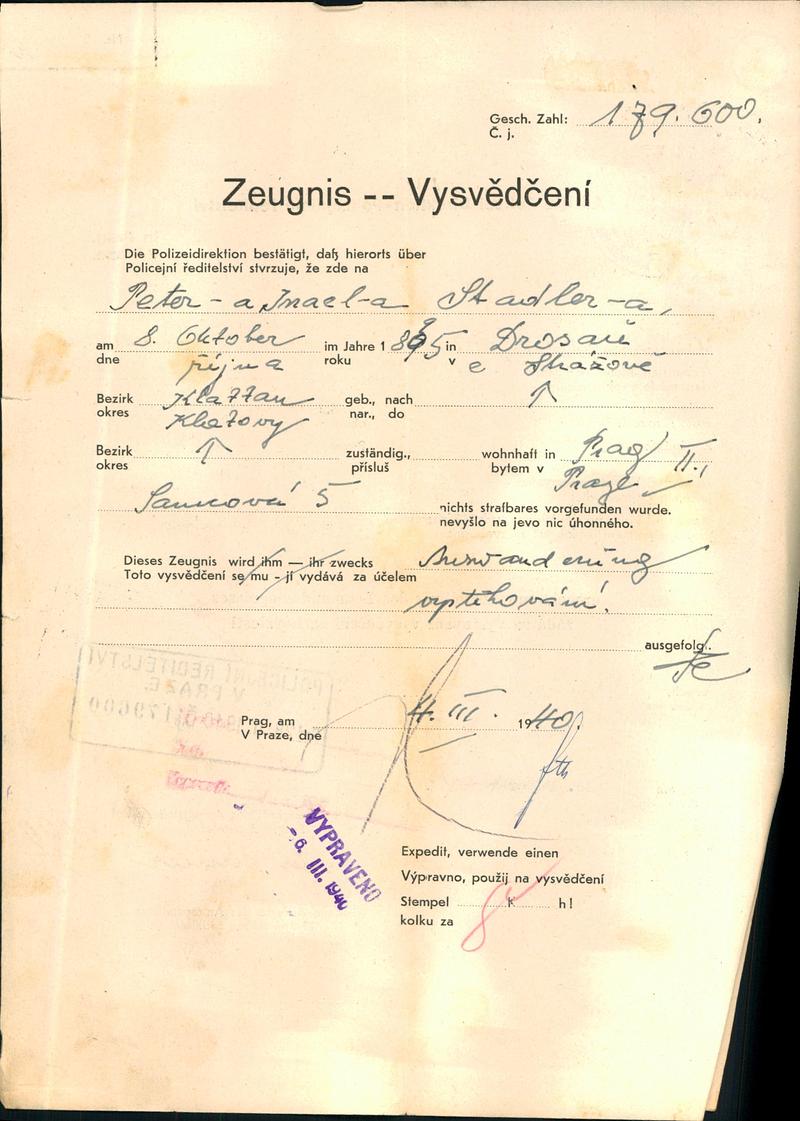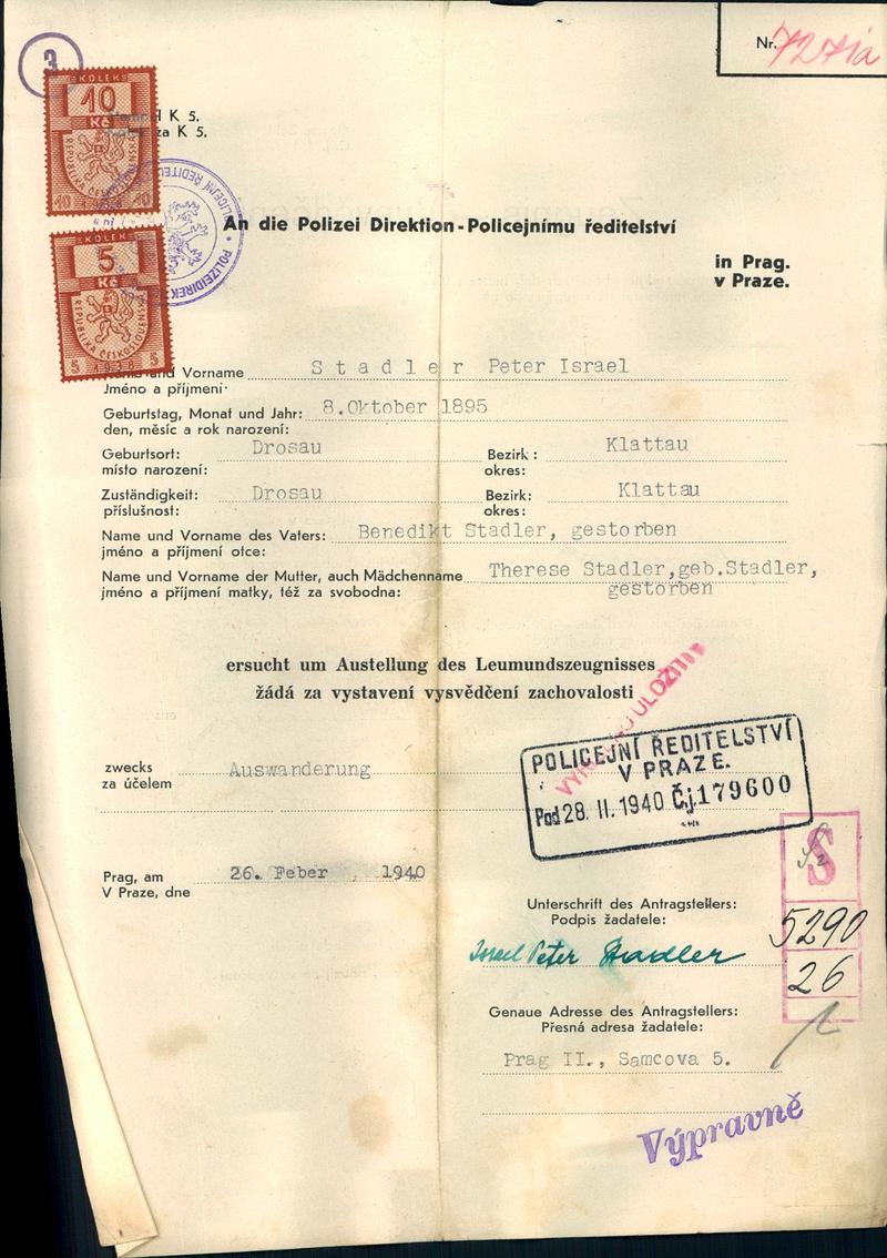 Nationalarchiv Prag > Polizei-Direktion Prag > 1931-1940 > S > Stadler Petr