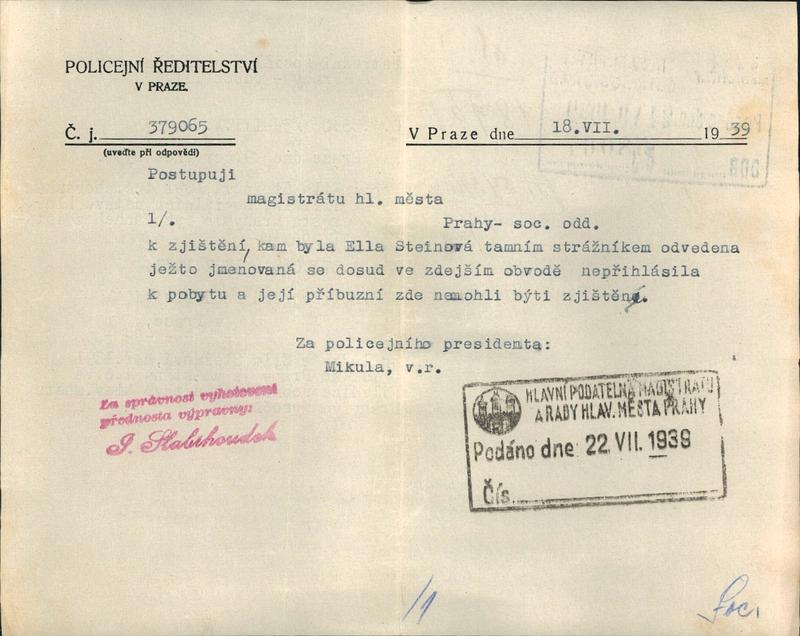 Nationalarchiv Prag > Polizei-Direktion Prag > 1931-1940 > S > Steinová Ela