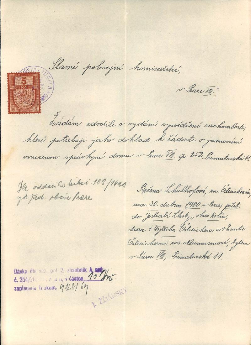Nationalarchiv Prag > Polizei-Direktion Prag > 1931-1940 > S > Schulhofová Božena