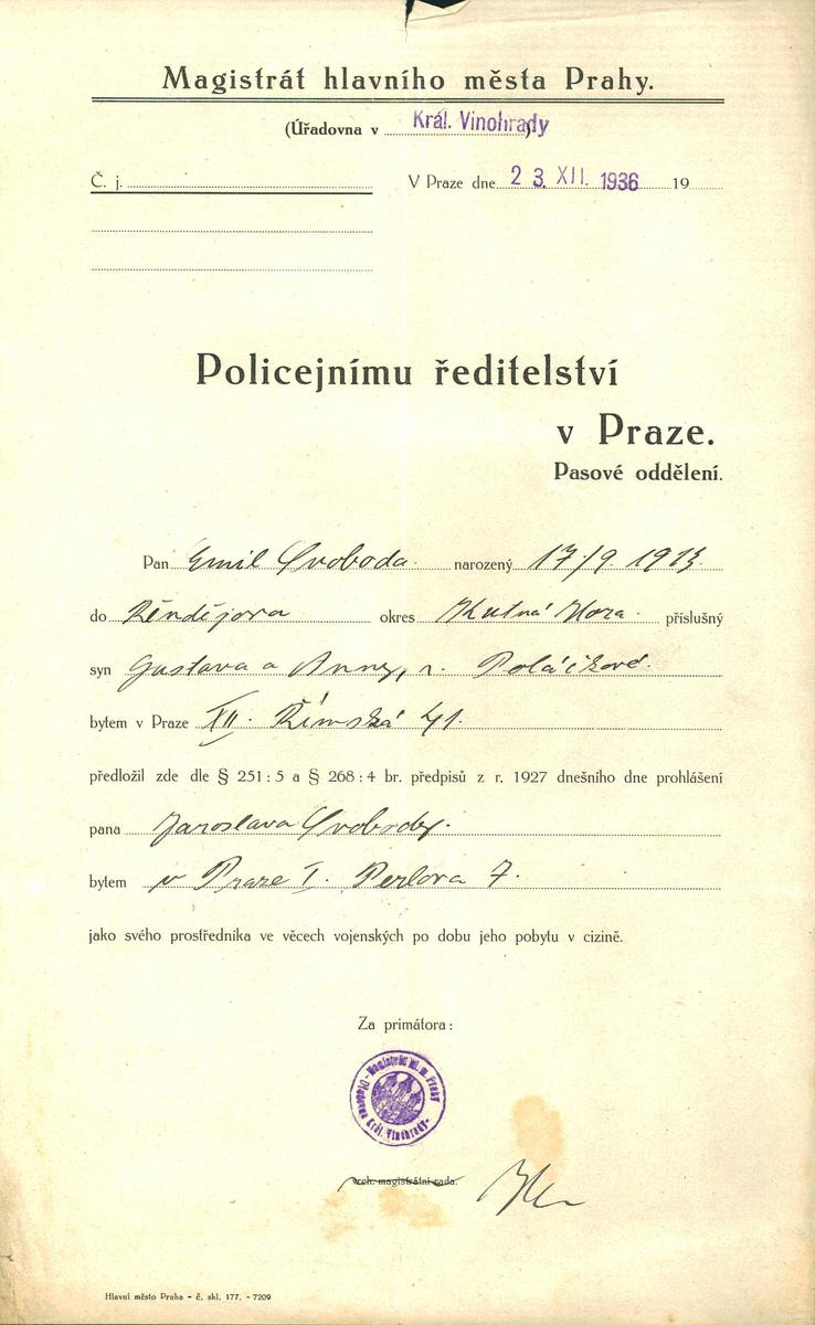 Nationalarchiv Prag > Polizei-Direktion Prag > 1931-1940 > S > Svoboda Emil