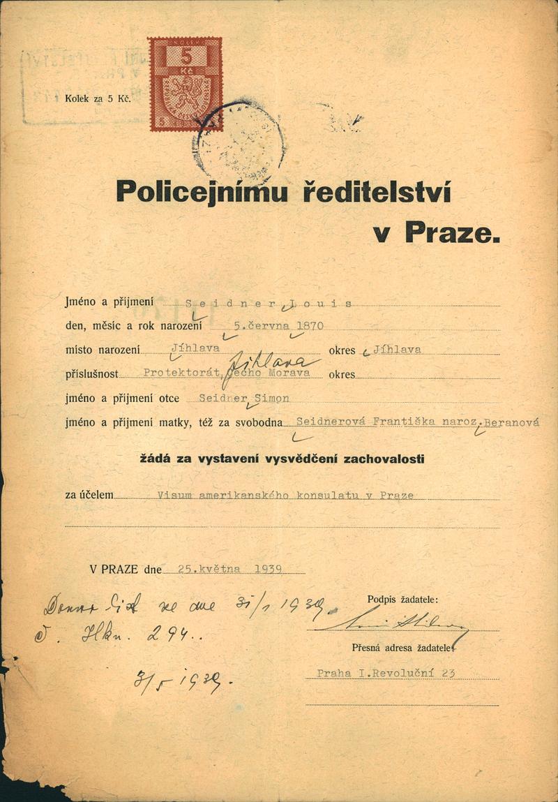 Nationalarchiv Prag > Polizei-Direktion Prag > 1941-1950 > S > Seidner Louis