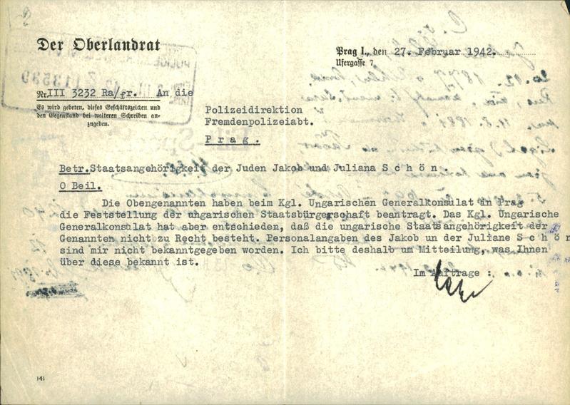 Nationalarchiv Prag > Polizei-Direktion Prag > 1941-1950 > S > Schön Jakub
