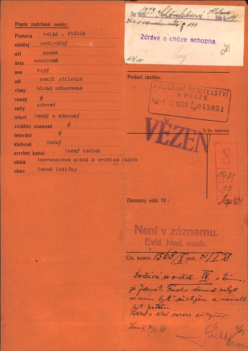 Nationalarchiv Prag > Polizei-Direktion Prag > 1941-1950 > S > Schönfeldová Helena
