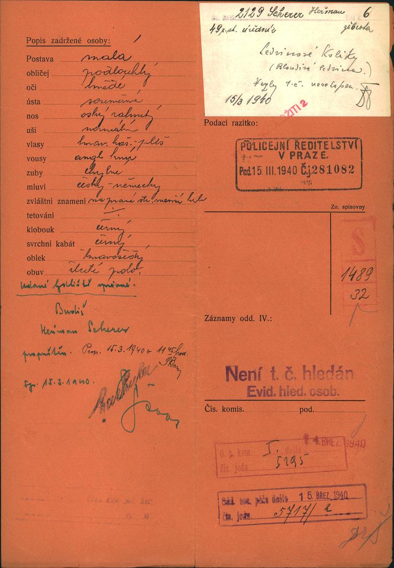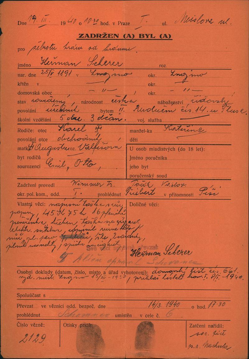 Nationalarchiv Prag > Polizei-Direktion Prag > 1941-1950 > S > Scherer Herrmann