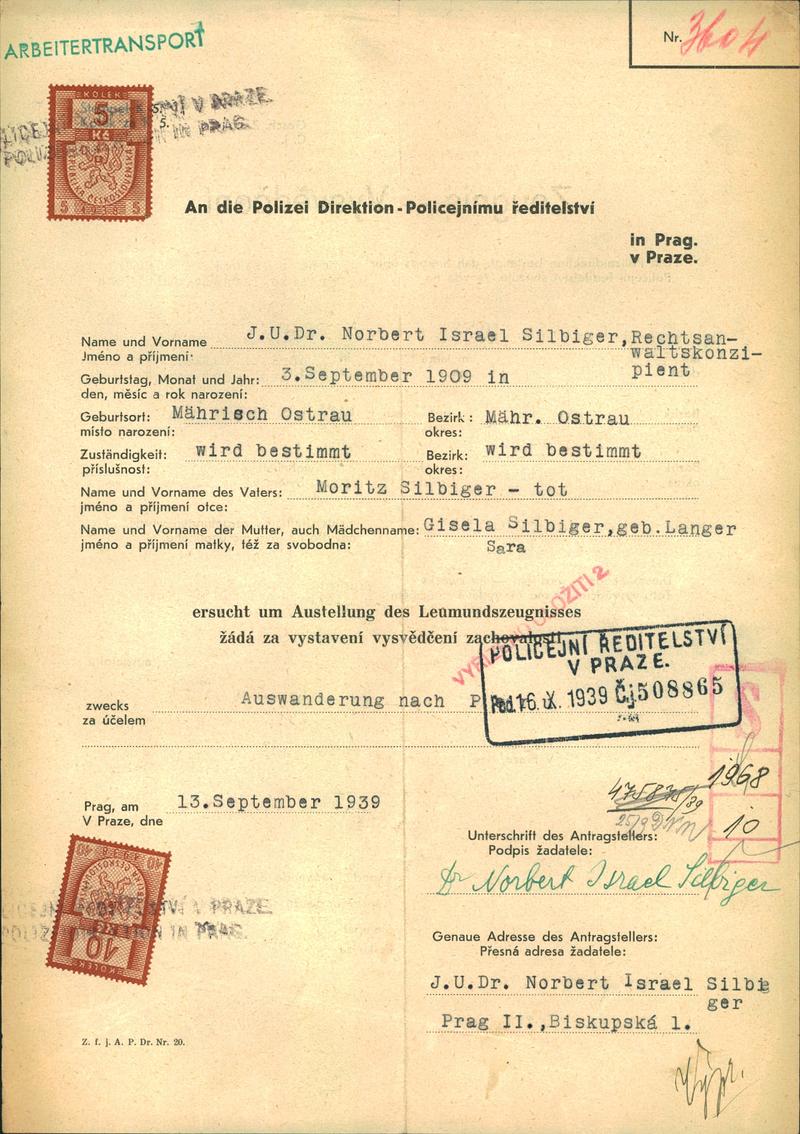 Nationalarchiv Prag > Polizei-Direktion Prag > 1941-1950 > S > Silbiger Norbert