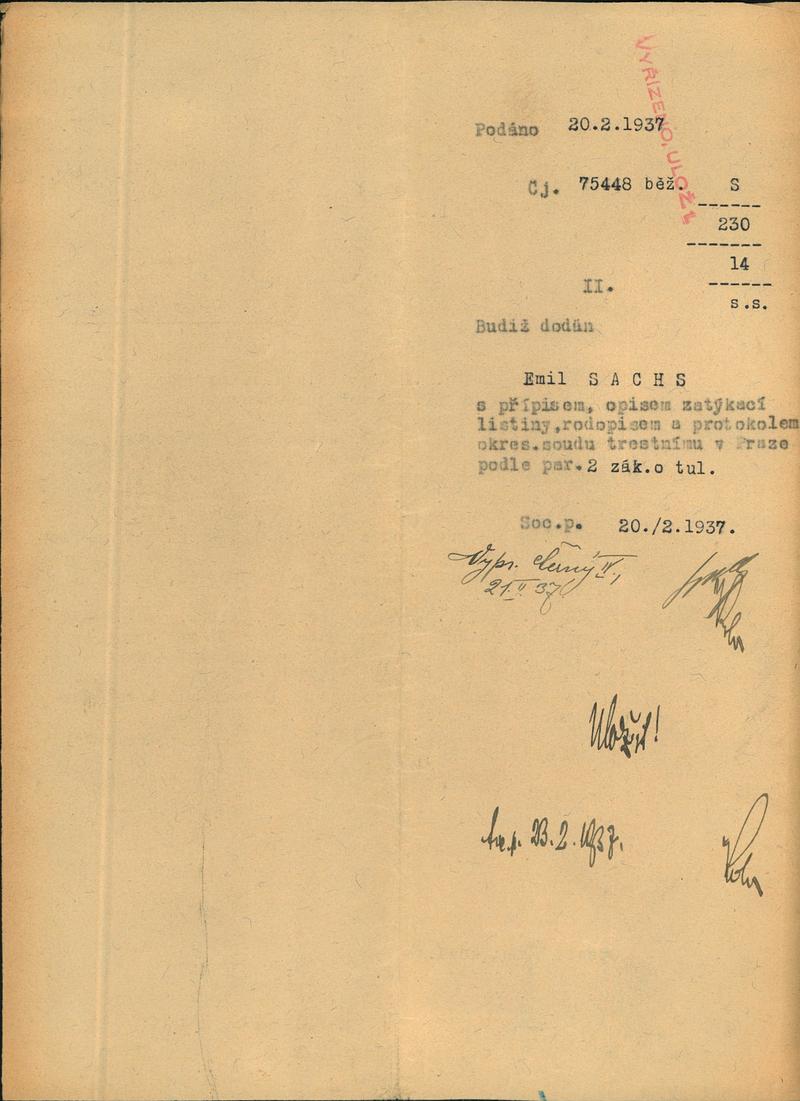 Nationalarchiv Prag > Polizei-Direktion Prag > 1941-1950 > S > Sachs Emil