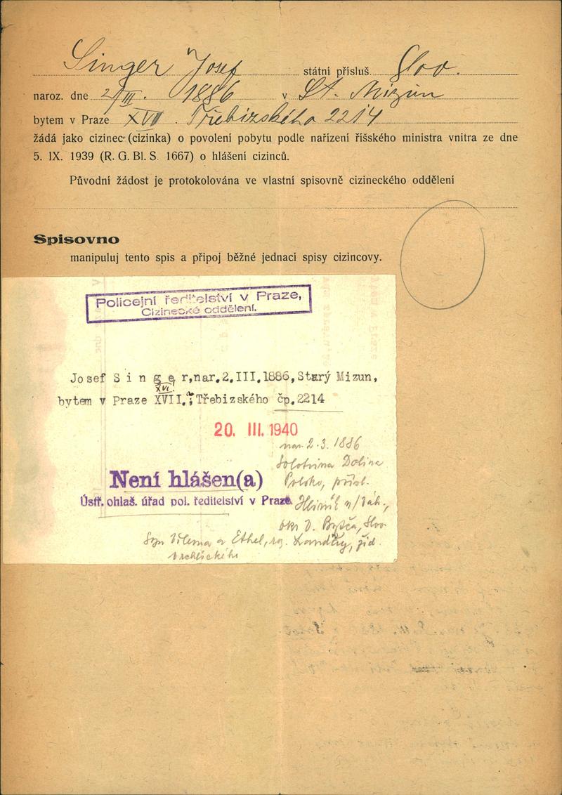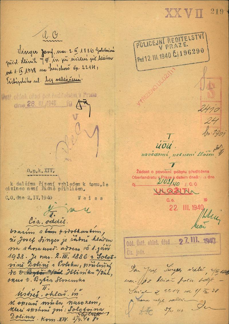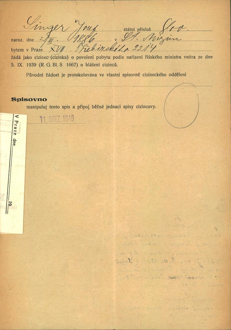 Nationalarchiv Prag > Polizei-Direktion Prag > 1941-1950 > S > Singer Josef