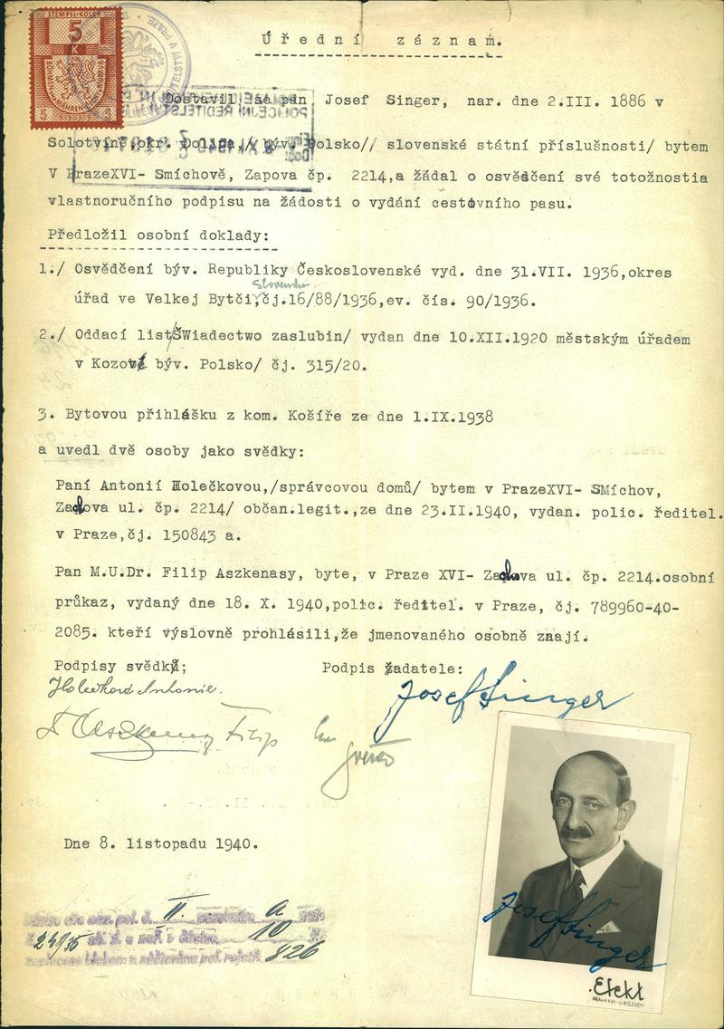 Nationalarchiv Prag > Polizei-Direktion Prag > 1941-1950 > S > Singer Josef