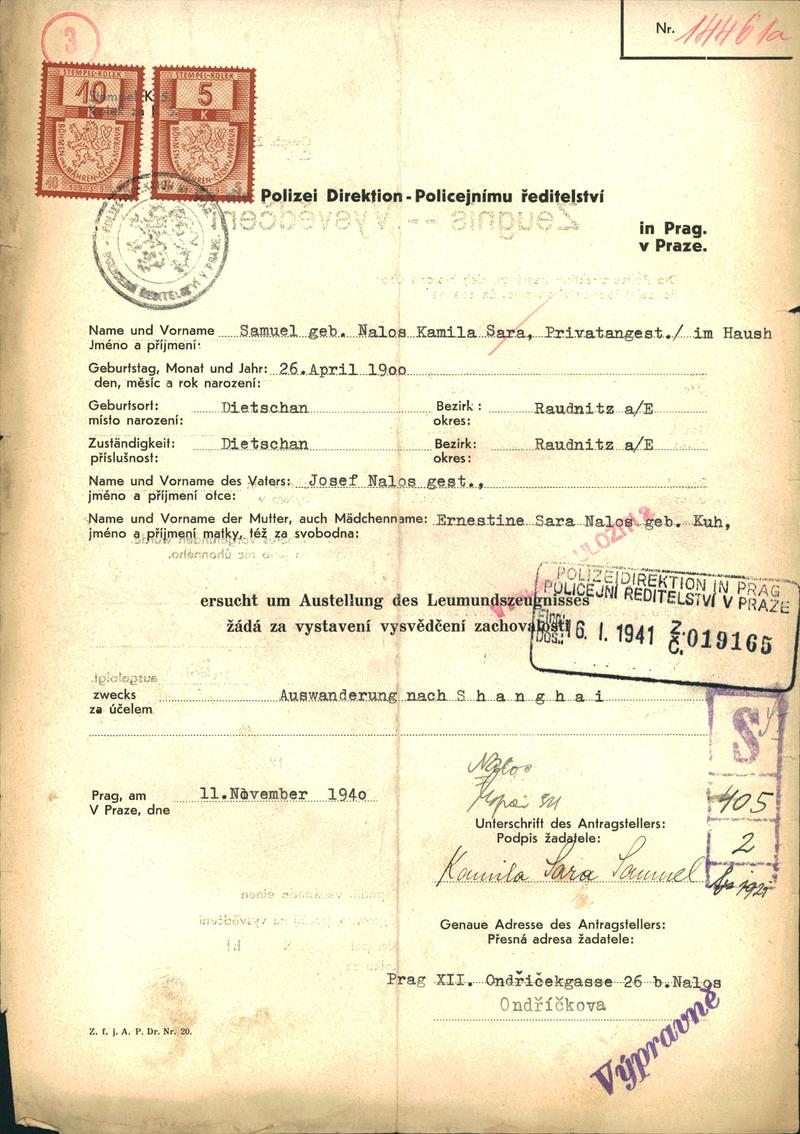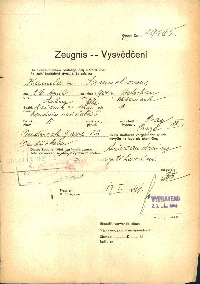 Nationalarchiv Prag > Polizei-Direktion Prag > 1941-1950 > S > Samuelová Kamila