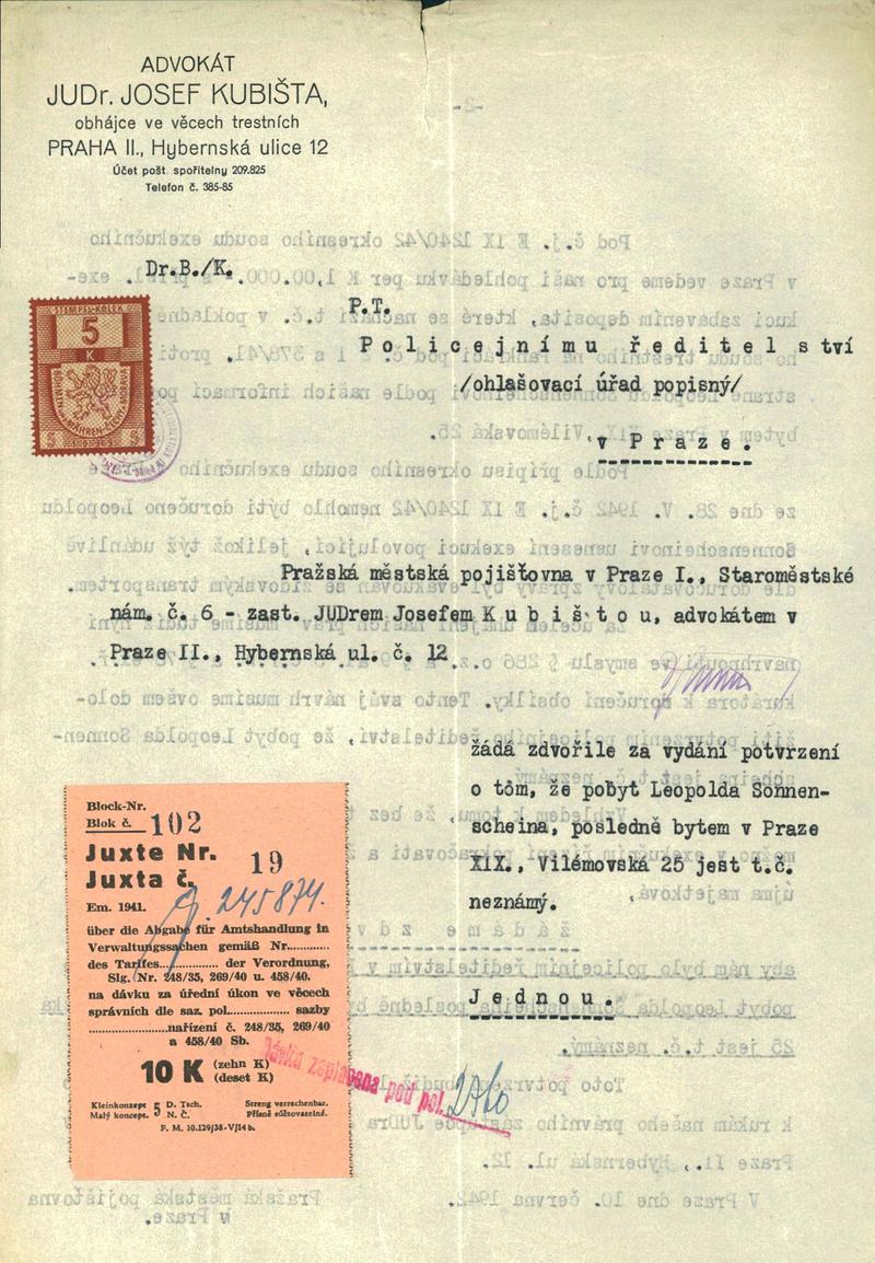 Nationalarchiv Prag > Polizei-Direktion Prag > 1941-1950 > S > Sonnenschein Leopold