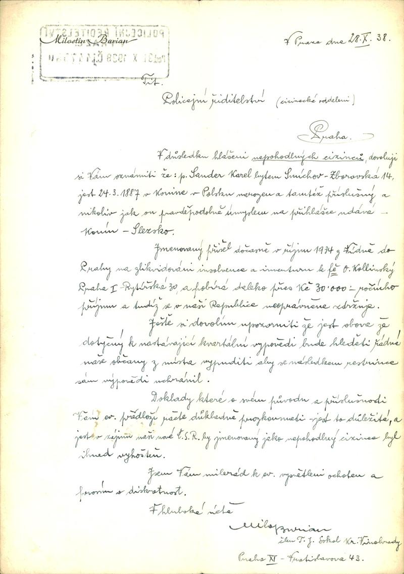 Nationalarchiv Prag > Polizei-Direktion Prag > 1941-1950 > S > Sander Karel