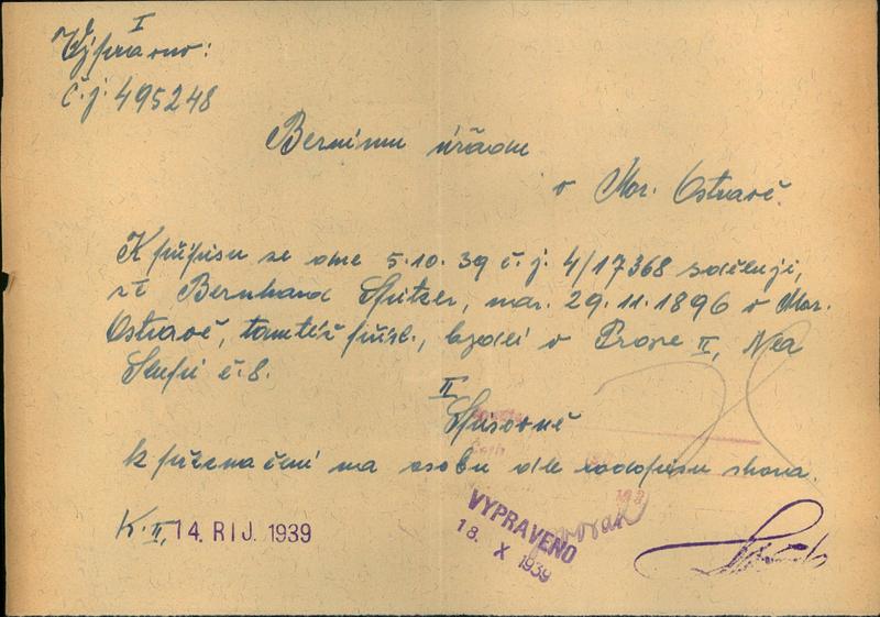 Nationalarchiv Prag > Polizei-Direktion Prag > 1941-1950 > S > Spitzer Bernhard