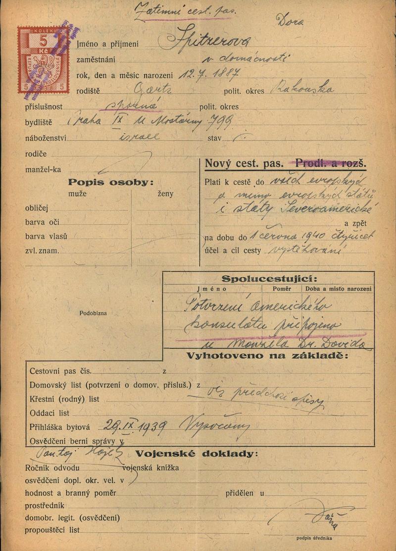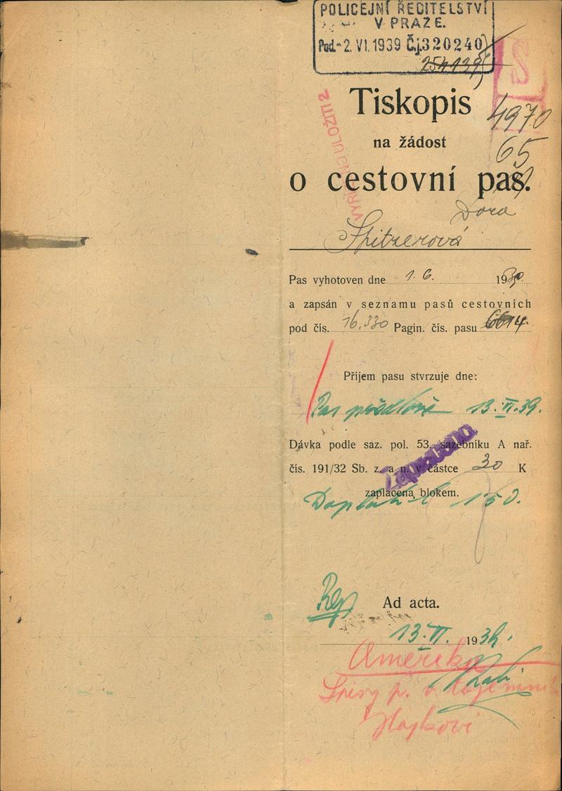 Nationalarchiv Prag > Polizei-Direktion Prag > 1941-1950 > S > Spitzerová Dora