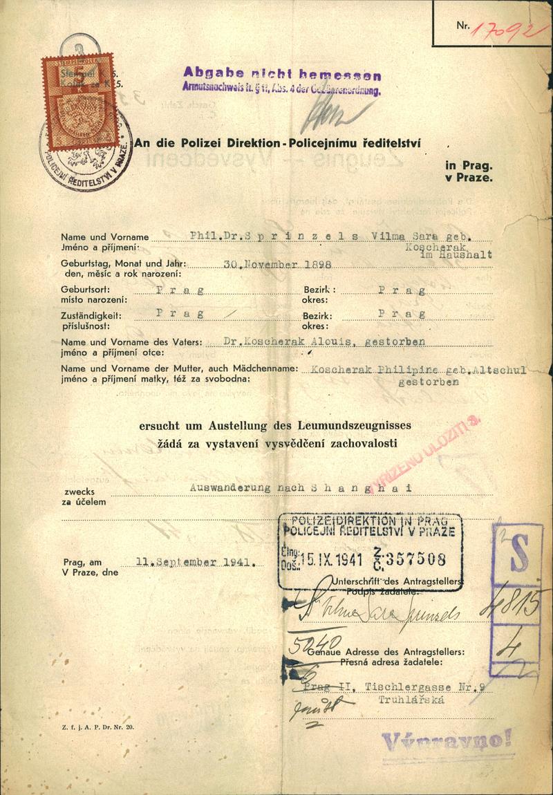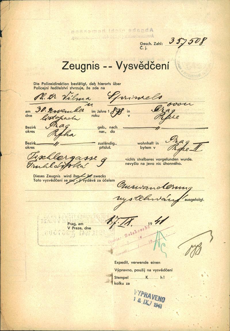 Nationalarchiv Prag > Polizei-Direktion Prag > 1941-1950 > S > Sprinzelsová Vilma