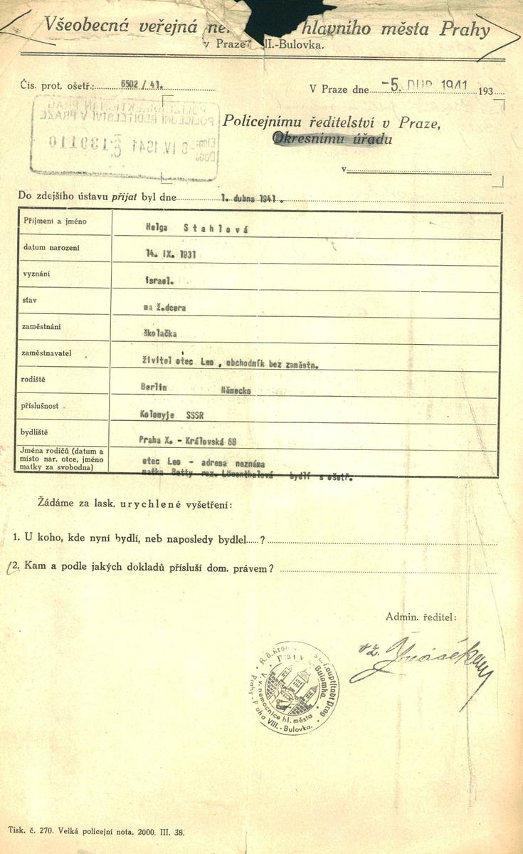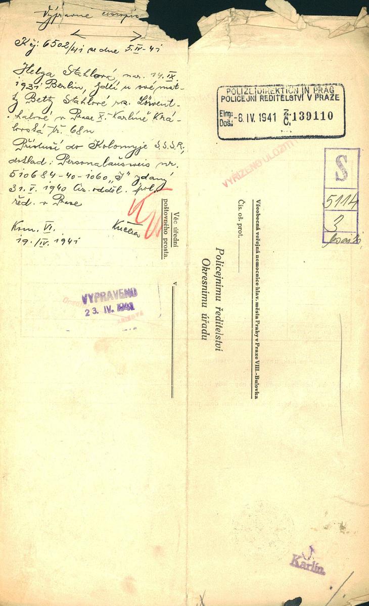 Nationalarchiv Prag > Polizei-Direktion Prag > 1941-1950 > S > Stahlová Helga