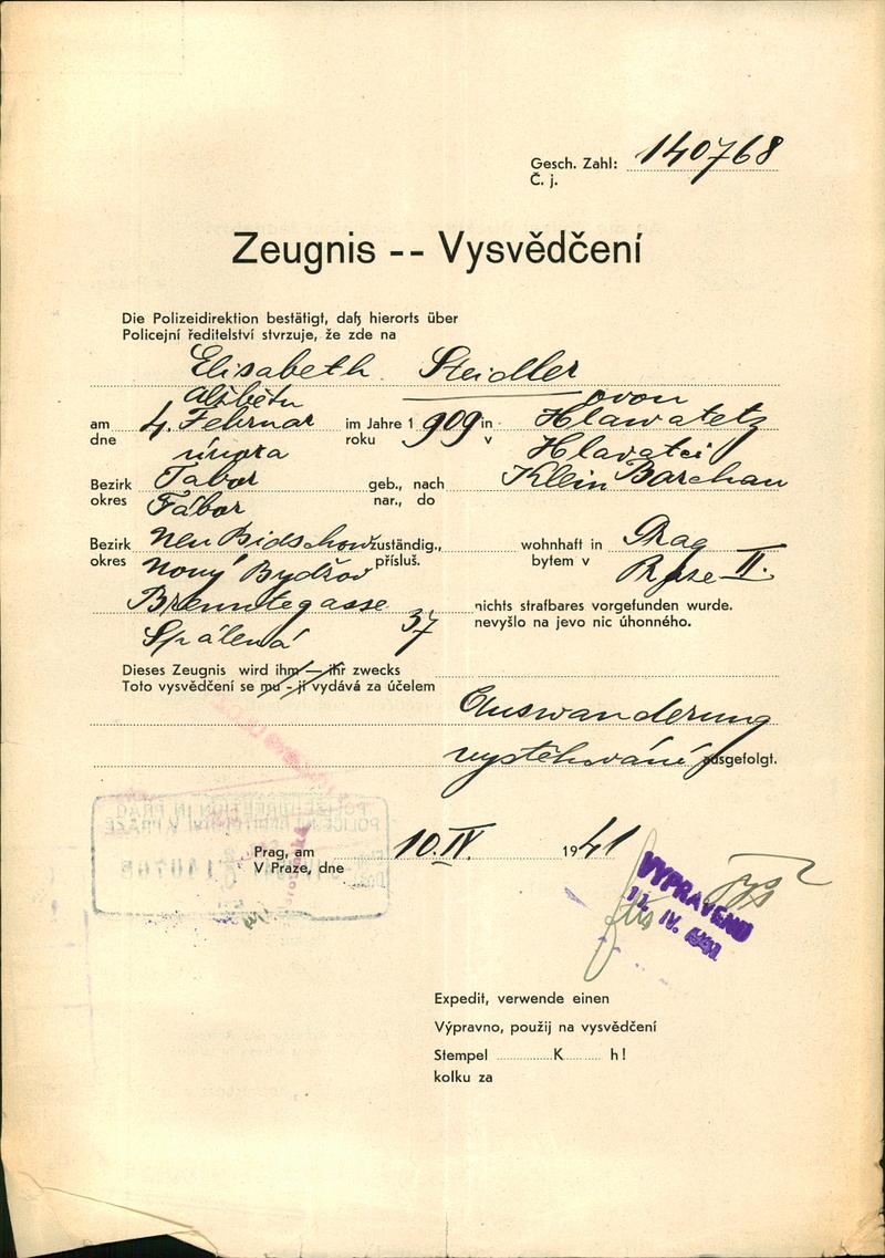 Nationalarchiv Prag > Polizei-Direktion Prag > 1941-1950 > S > Steidlerová Alžběta