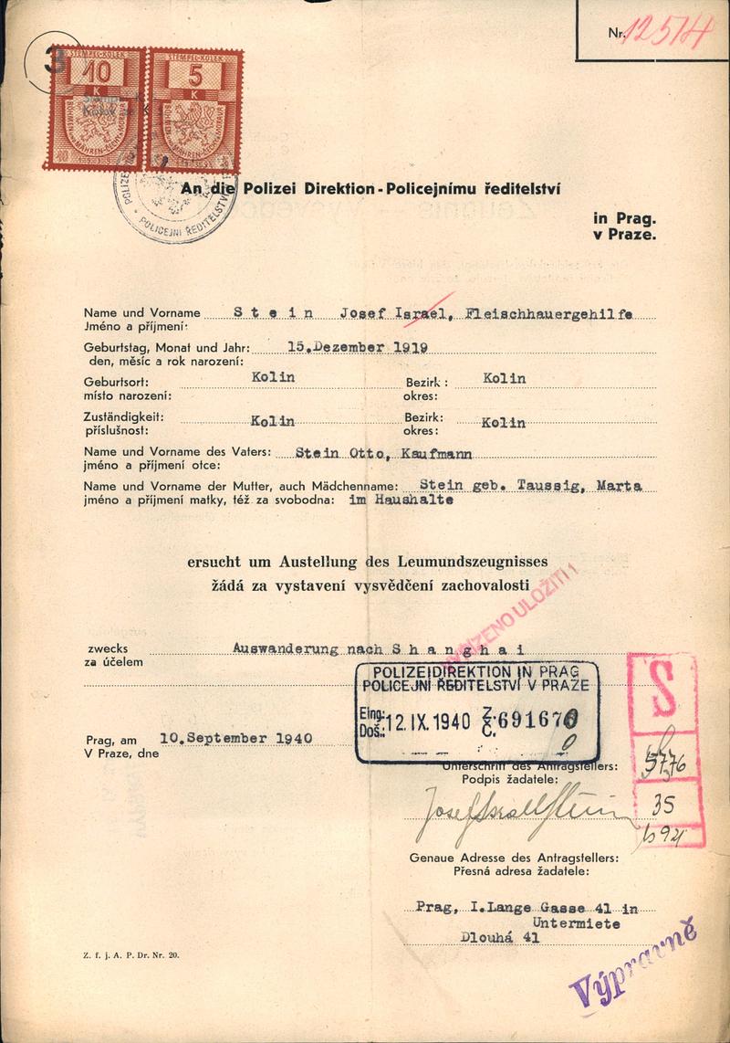 Nationalarchiv Prag > Polizei-Direktion Prag > 1941-1950 > S > Stein Josef