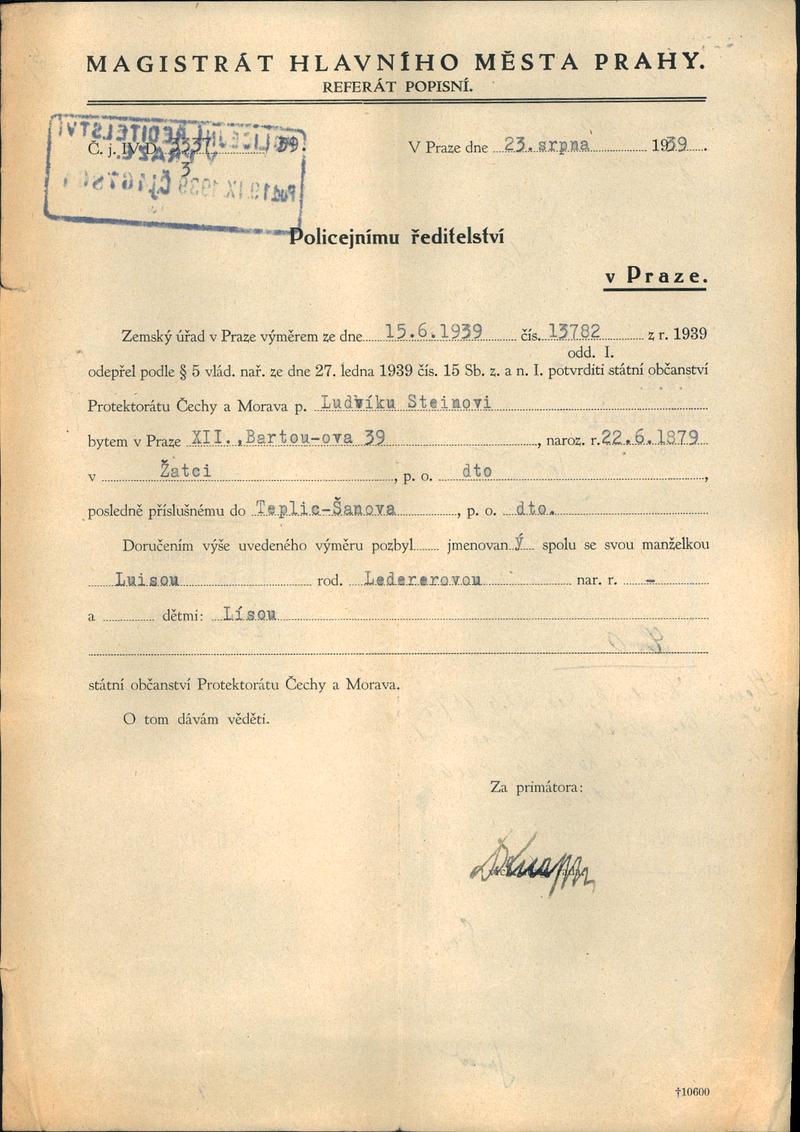 Nationalarchiv Prag > Polizei-Direktion Prag > 1941-1950 > S > Stein Ludvík
