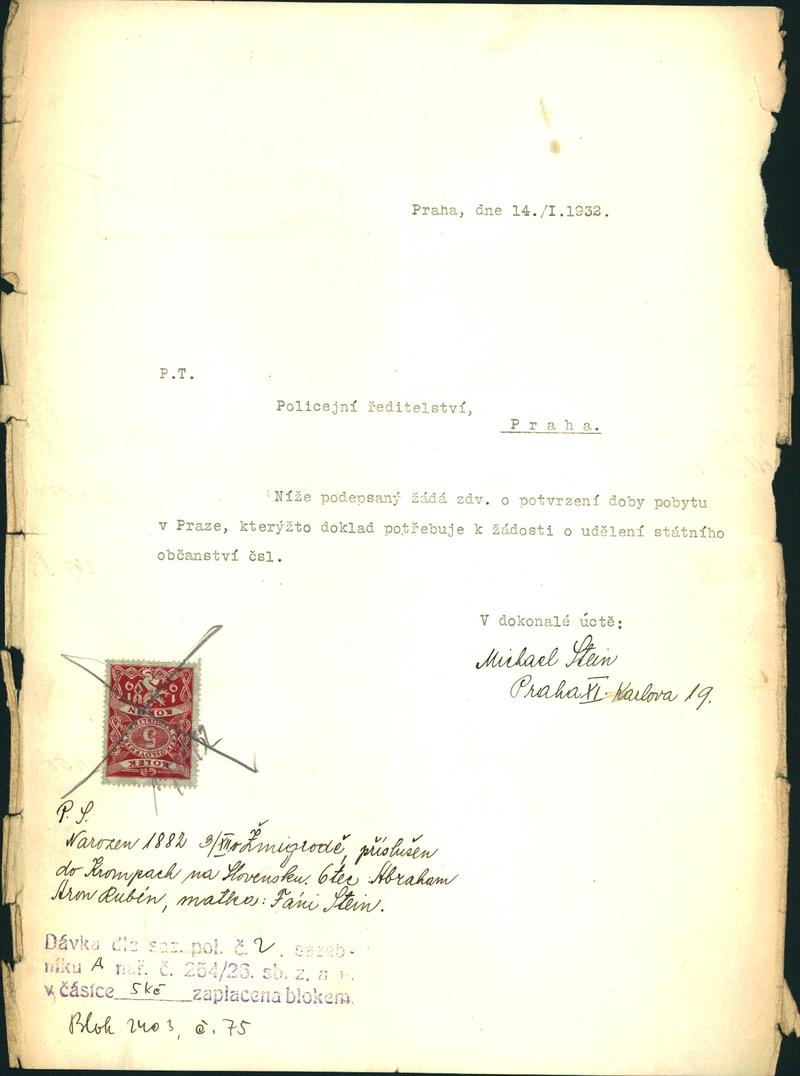 Nationalarchiv Prag > Polizei-Direktion Prag > 1941-1950 > S > Stein Michael