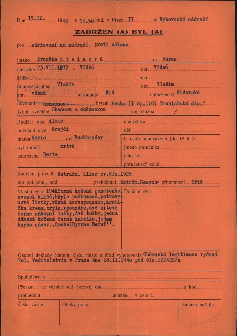 Nationalarchiv Prag > Polizei-Direktion Prag > 1941-1950 > S > Steinová Arnoštka