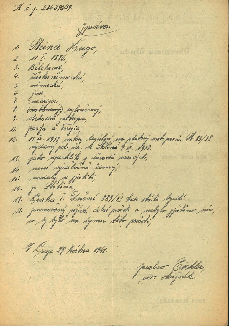 Nationalarchiv Prag > Polizei-Direktion Prag > 1941-1950 > S > Steiner Hugo