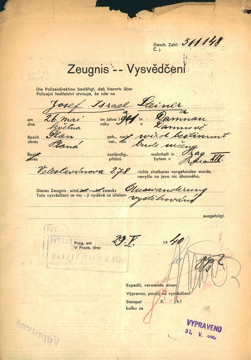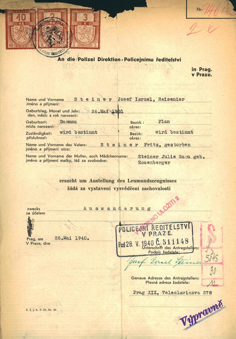 Nationalarchiv Prag > Polizei-Direktion Prag > 1941-1950 > S > Steiner Josef