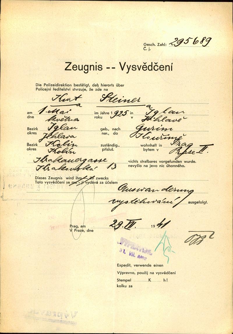 Nationalarchiv Prag > Polizei-Direktion Prag > 1941-1950 > S > Steiner Kurt