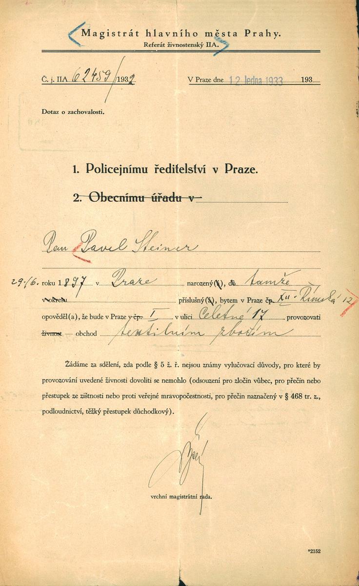 Nationalarchiv Prag > Polizei-Direktion Prag > 1941-1950 > S > Steiner Pavel
