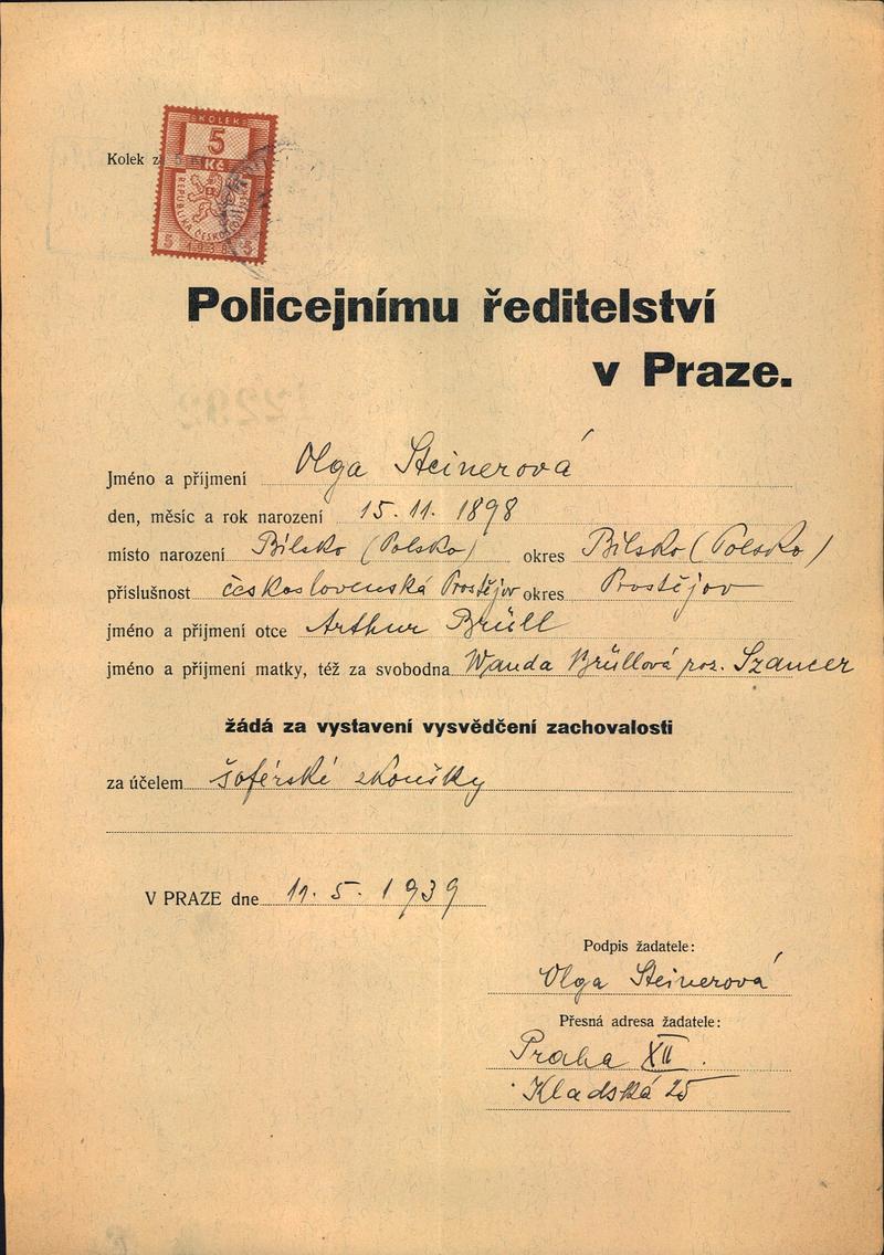 Nationalarchiv Prag > Polizei-Direktion Prag > 1941-1950 > S > Steinerová Olga