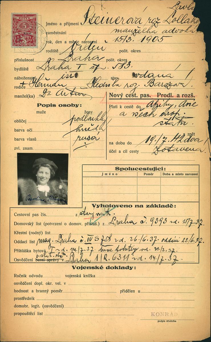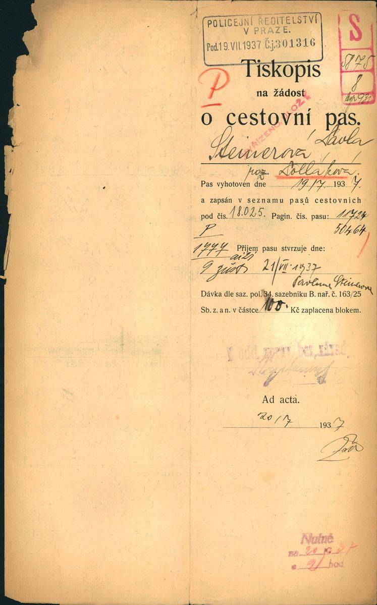Nationalarchiv Prag > Polizei-Direktion Prag > 1941-1950 > S > Steinerová Pavlína