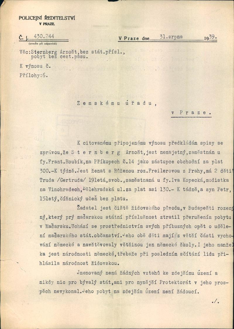 Nationalarchiv Prag > Polizei-Direktion Prag > 1941-1950 > S > Sternberg Arnošt