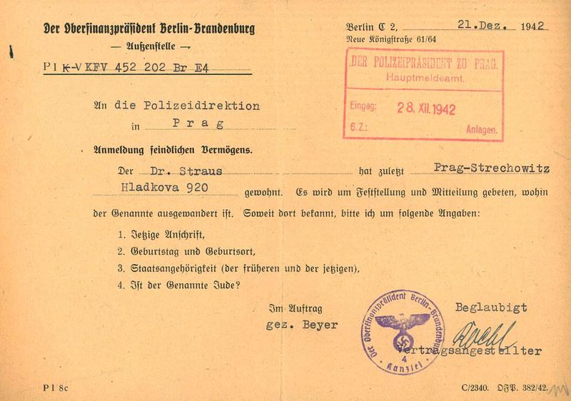 Nationalarchiv Prag > Polizei-Direktion Prag > 1941-1950 > S > Strauss Julius