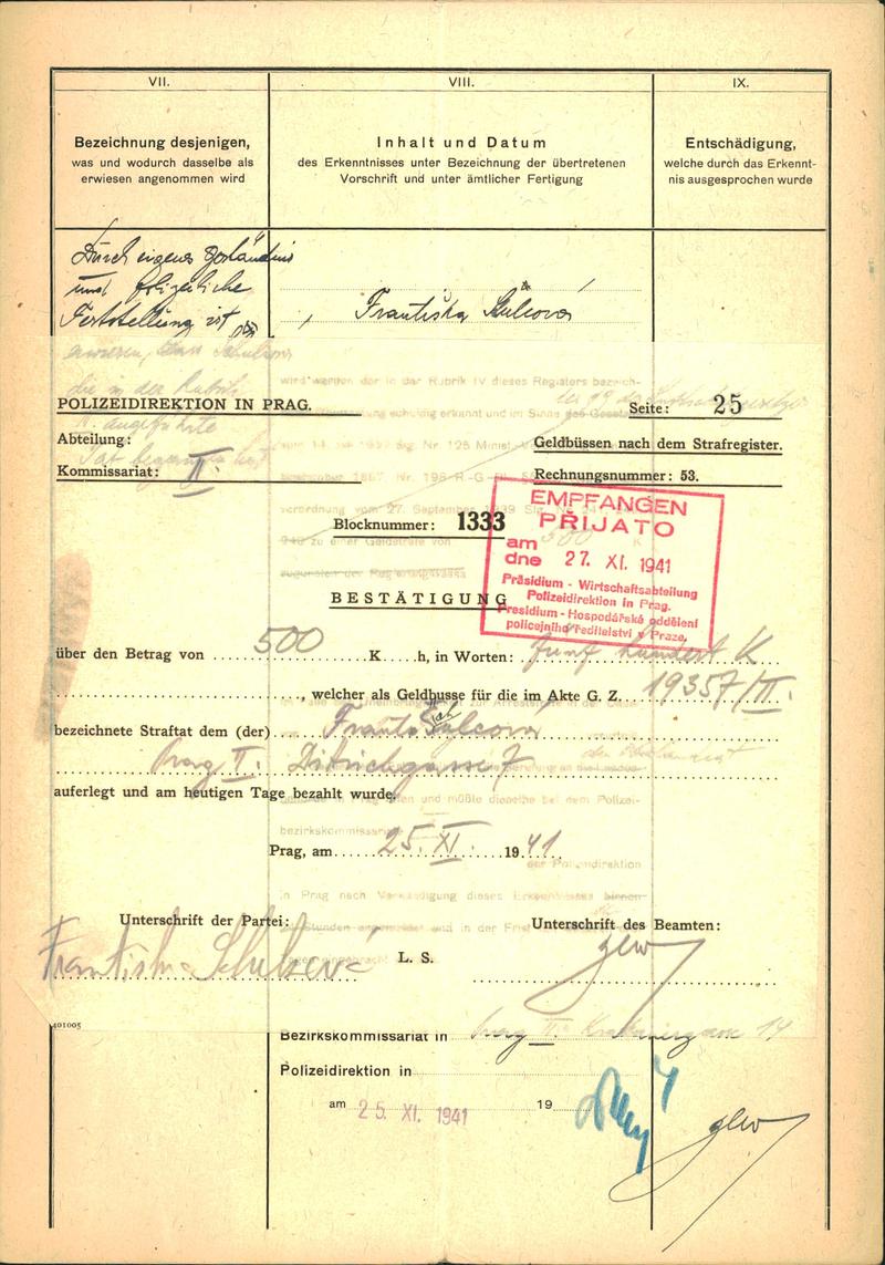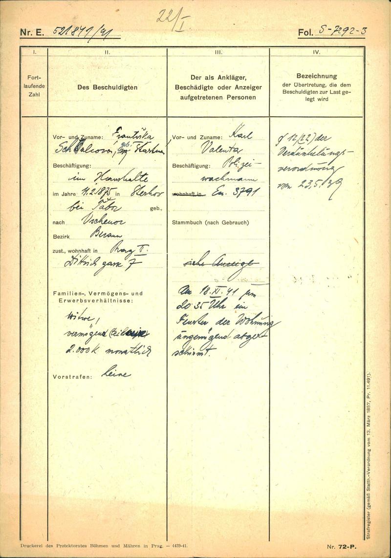 Nationalarchiv Prag > Polizei-Direktion Prag > 1941-1950 > S > Schulzová Františka