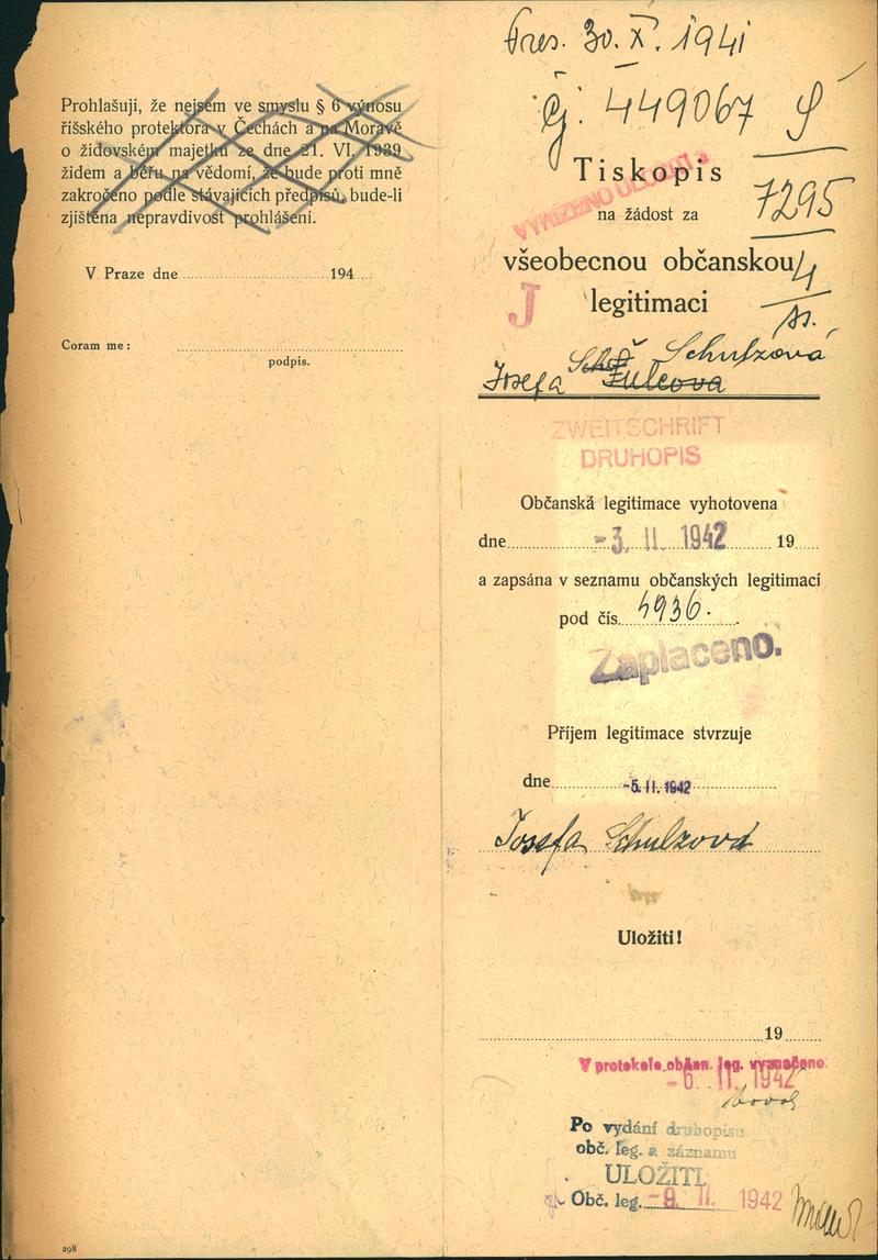 Nationalarchiv Prag > Polizei-Direktion Prag > 1941-1950 > S > Schulzová Josefa