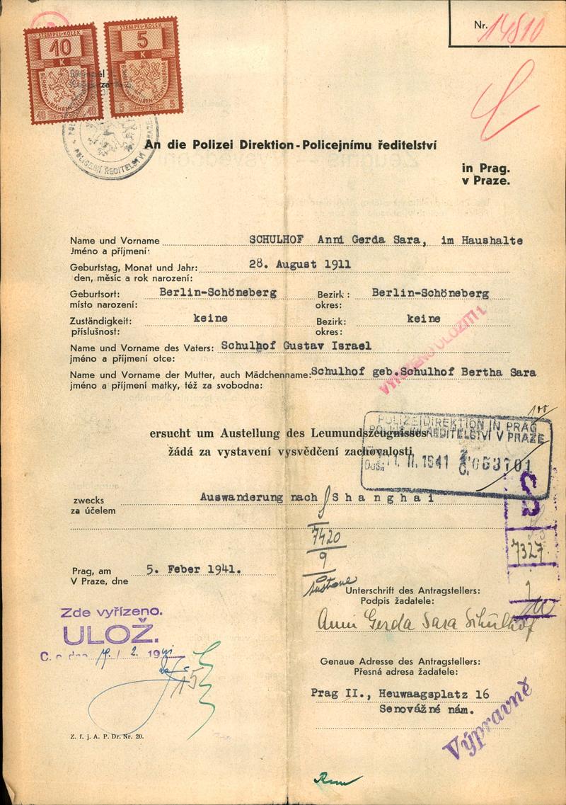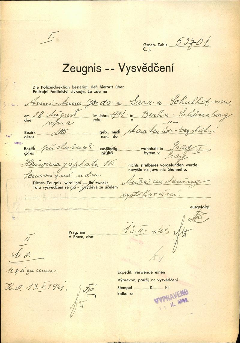 Nationalarchiv Prag > Polizei-Direktion Prag > 1941-1950 > S > Schulhofová Anna