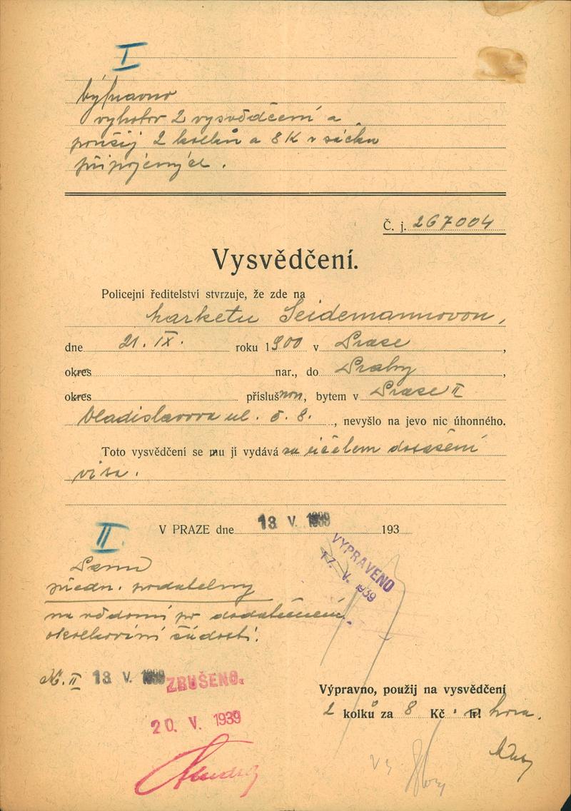 Nationalarchiv Prag > Polizei-Direktion Prag > 1941-1950 > S > Seidemannová Margareta