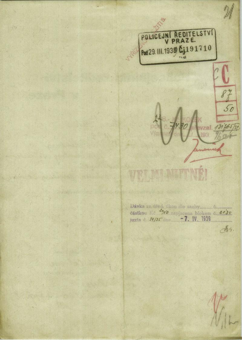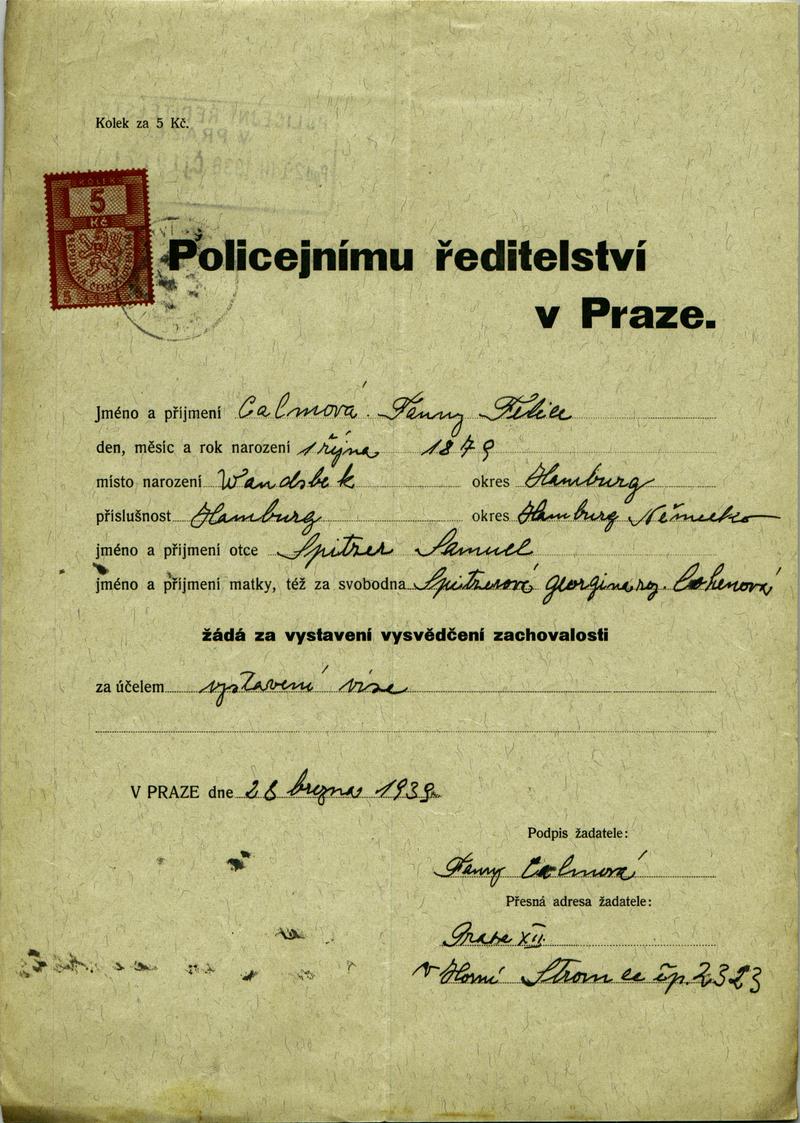 Nationalarchiv Prag > Polizei-Direktion Prag > 1931-1940 > C > Calmová Fanny